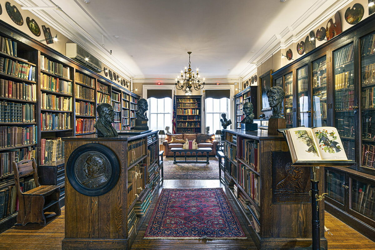 - The competition is open to Salmagundi artist members in good standing, who may submit two (2) works, which must, in some degree, use or include this logo from the windows of the Library and the phrase “Ex Libris Salmagundi Club New York”. The winning design will be chosen blind by an appointed committee.